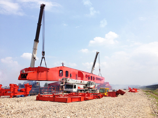 公司主要設(shè)備有:SLJ900T流動式運架一體機(jī)、SXJ900T/32M分體式架橋機(jī)及運梁車、MG450T提梁機(jī)(跨度有35M~40M,起升凈高20~40M)、ME900T提梁機(jī)、SXJ550T/32M一跨式架橋機(jī)及運梁車、SGTJ180T鋪架機(jī)等高鐵運架設(shè)備。